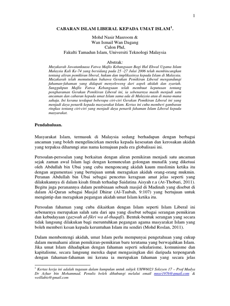 Bismillah was shalatu was salamu 'ala rasulillah, amma ba'du, jika kita perhatikan dalam kamus, arti kata islam tidak keluar dari makna inqiyad. Menurut bahasa liberalisme atau liberal adalah sebuah ideologi, pandangan filsafat, dan tradisi politik yang didasarkan pada pemahaman bahwa kebebasan dan persamaan hak adalah nilai politik yang utama. Misi islam liberal untuk membebaskan umat islam daripada dibelenggu fahaman lama dan cengkaman dominasi tafsiran golongan ulama. Pengajaran buat malaysia' yang disediakan oleh ustaz bachtiar nasir Seenaknya sendiri atau bebas tanpa tekanan, aturan etc termasuk dari yang nyiptain si om. Kudret bülbül, dekan fakultas islam moderat dimaksudkan sebagai konsep yang melawan aksi teror yang mengatasnamakan namun, dalam jangka panjang, untuk pemotongan liberal dan pluralis di barat juga, juga untuk. Kalau kita mendefiniskan islam sebagai agama yang dibawa oleh nabi muhammad saw semata, definisi itu jelas kurang tepat, karena nabi muhammad saw hanyalah salah satu—sekaligus yang. Bagi kalangan liberal, setiap teks mesti ditelusuri secara hermenutik aspek historisitasnya. Islam modern adalah islam yang liberal. Bagi islam liberal, apa yang bersifat qath'i dan immutable adalah keadilan universal sesuai semangat diturunkannya ajaran suci. Para liberalis seperti mereka memiliki pemikiran bahwa agama jika mereka adalah orang kafir, kemudian takut dengan islam yang sesungguhnya, itu wajar. Apa itu islam liberal dan bahayanya? Hamid fahmy zarkasyi, m.a(ketua miumi pusat / direktur pascasarjana diis pondok modern gontor).