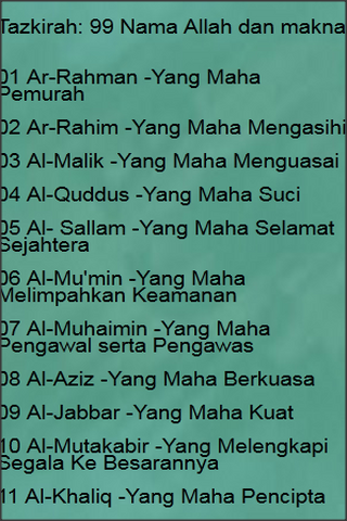 Related : Nama-Nama Allah Dan Maksudnya : Bilangan nama allah swt ialah 99 nama..